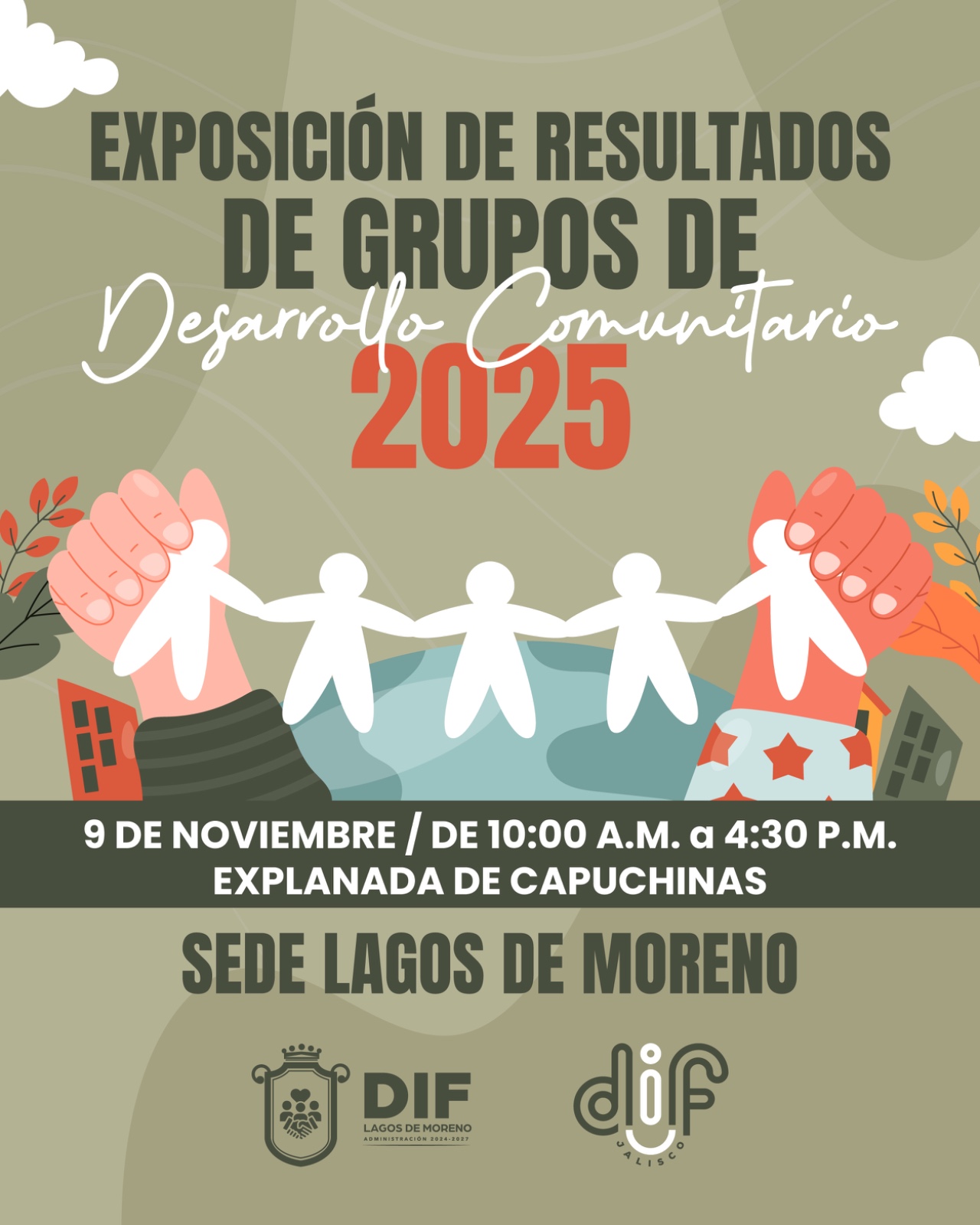 El Sistema DIF Municipal de Lagos de Moreno te invita a la Exposición de Resultados de los Grupos de Desarrollo Comunitario, un espacio donde podrás conocer el talento, esfuerzo y dedicación de quienes forman parte de estos proyectos que impulsan el crecimiento y bienestar de nuestras comunidades. 🤝💫