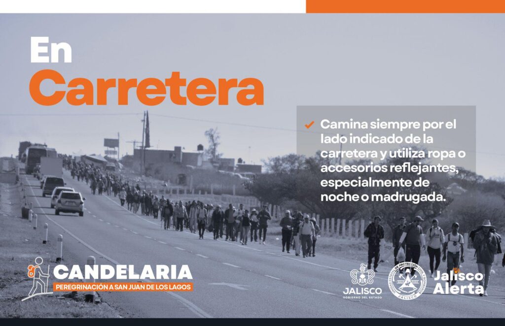 El Gobierno del Estado de Jalisco, en coordinación con el Gobierno municipal de Lagos de Moreno encabezado por el Maestro Edgar González, y el sistema DIF, impulsa acciones de prevención y autocuidado e invita respetuosamente a la ciudadanía y a las y los peregrinos que participan en la Candelaria peregrinación a San Juan de los Lagos a seguir las recomendaciones de seguridad durante su trayecto. ![]()
