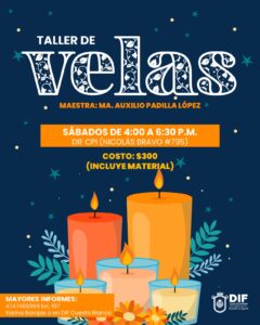 ¡Aprende a crear tus propias velas artesanales! El Sistema DIF Municipal te invita al Taller de Velas, impartido por Ma.