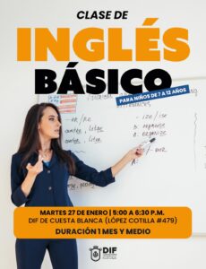¡Están invitados a nuestros Talleres de Inglés en el DIF Cuesta Blanca! Inglés básico I para adultos Martes 26 de