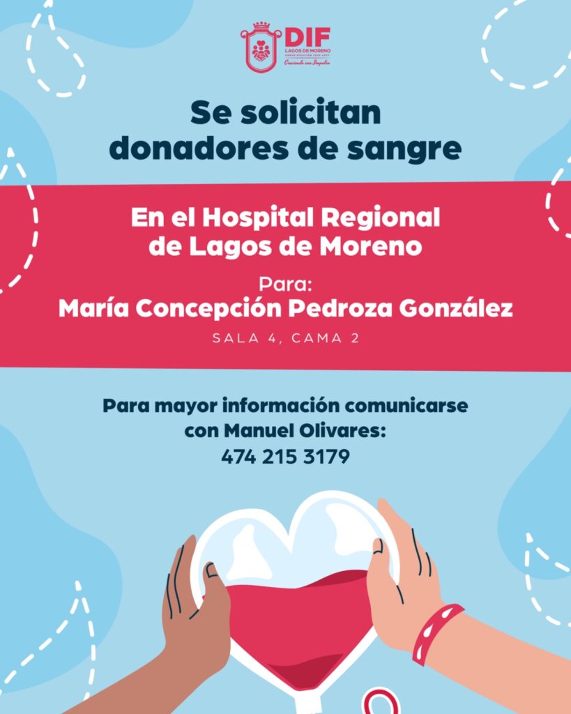 Se solicitan donadores de sangre 🩸 Se solicita el apoyo de la ciudadanía para María Concepción Pedroza González, quien se